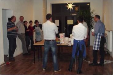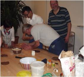 Bäckermeister Olaf Kleinschmitt führte durch den geselligen Abend, es gab selbstgemachtem Glühwein, Punsch und Tee. In fröhlicher und lockerer Runde wurden Christstollen und Zimtsterne gebacken.